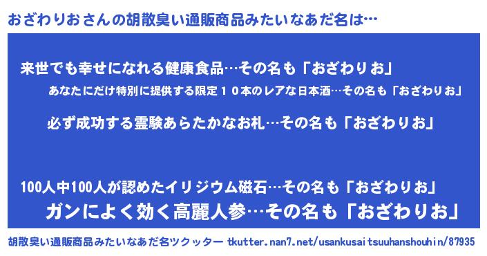 | ヘコむあだ名 | 『おざもー』『おざわりお(震え声)』 |
