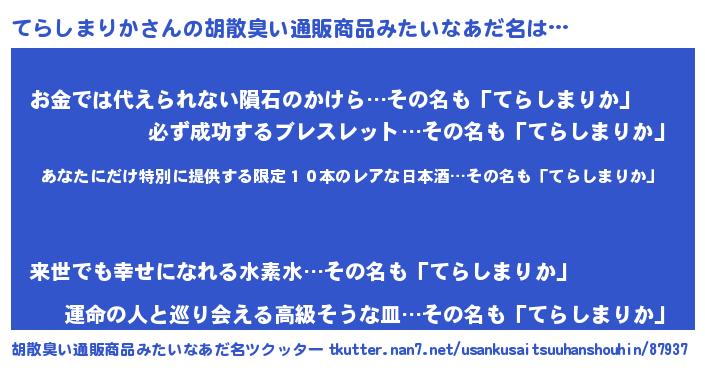| 欧米人風あだ名 | 『ダレノガレてらしまりか』 |