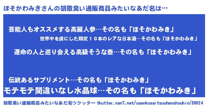 | 肩書あだ名 | 『ほそかわみき大統領』 |