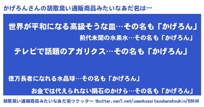 | 意味不明あだ名 | 『自称かげろん』『かげろんフォーエバー』 |