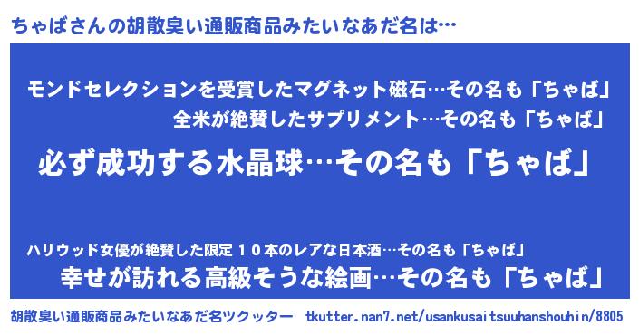 | ヒーロー風カッコイイあだ名 | 『スーパーチャバ』『天空の使者ちゃば』 |