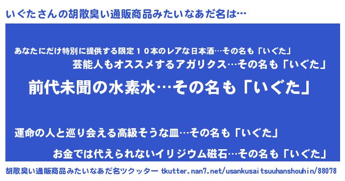 | 意味不明あだ名 | 『永久保存いぐた』『なめこ科いぐた属』 |