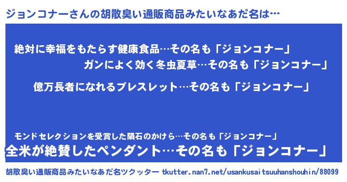 | 男性向けラノベタイトル風あだ名 | 『ジョンコナーアートオンライン』 |