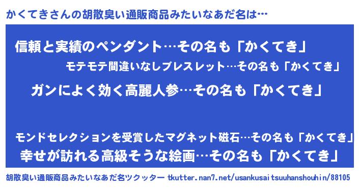 | 意味不明あだ名 | 『自称かくてき』『かくてきフォーエバー』 |