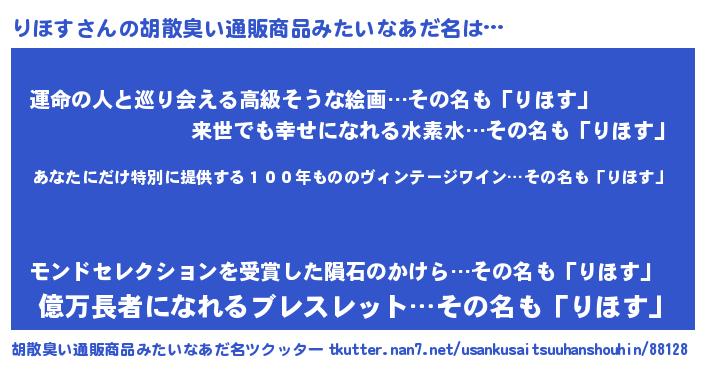 | 意味不明あだ名 | 『住所不定無職りほす(1歳)』 |
