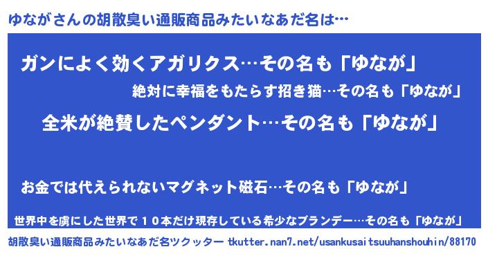| 意味不明あだ名 | 『とにかく怪しいゆなが』『自称ゆなが』 |