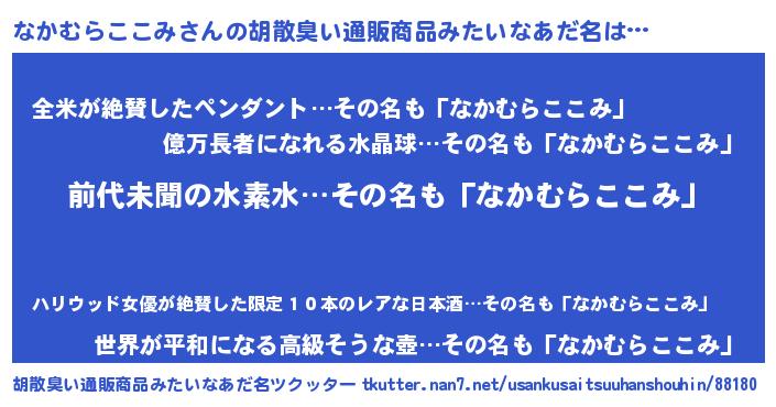 | ヘコむあだ名 | 『なかむらここみ(遠い目)』『なかっちょ』 |