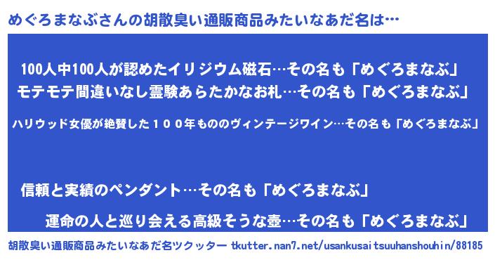 | 料理風あだ名 | 『めぐろまなぶのカルパッチョ風』 |