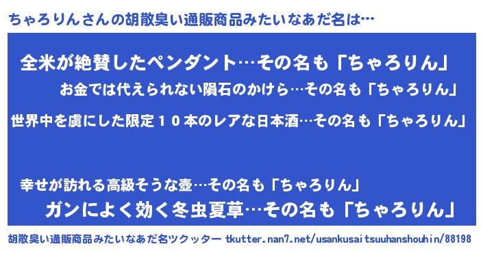 | 欧米人風あだ名 | 『ダレノガレちゃろりん』 |