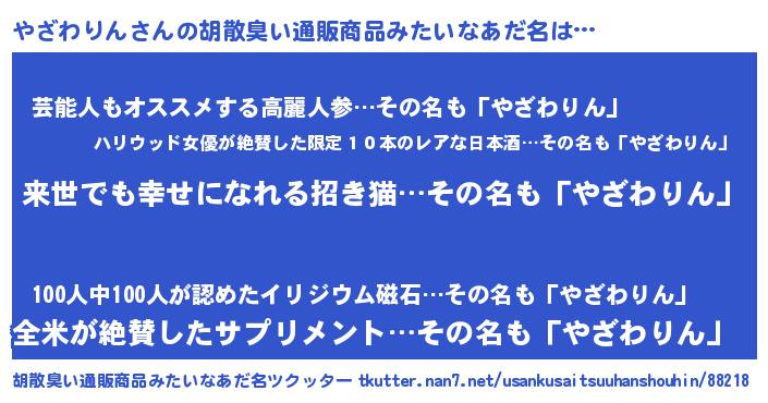 | 意味不明あだ名 | 『永久保存やざわりん』『自称やざわりん』 |