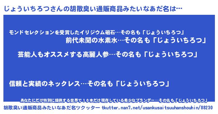 | 意味不明あだ名 | 『自称じょういちろつ』 |