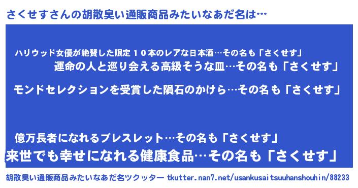 | ヒーロー風カッコイイあだ名 | 『天空の使者さくせす』『仮面サクダー』 |