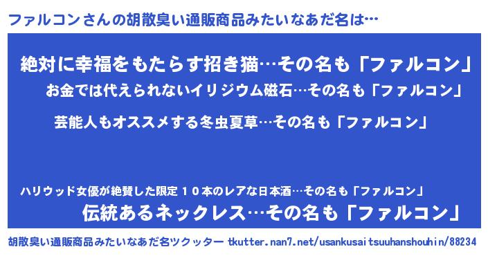 | 意味不明あだ名 | 『自称ファルコン』『永久保存ファルコン』 |