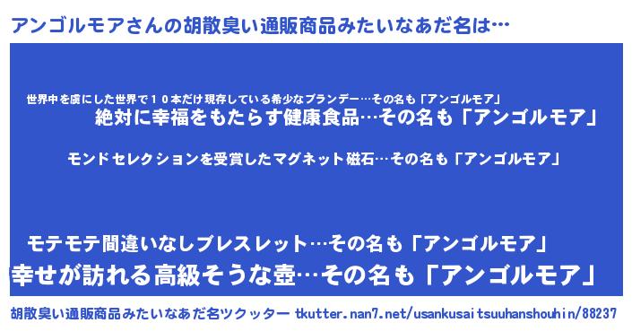 | ヘコむあだ名 | 『酢こんぶ』『アンゴルモア(震え声)』 |