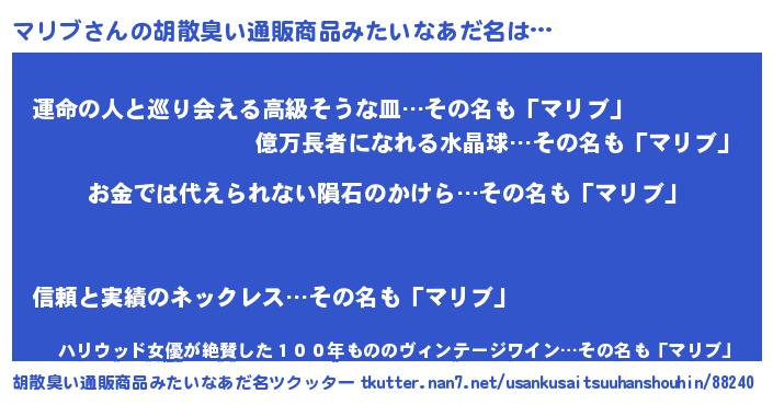 | 男性向けラノベタイトル風あだ名 | 『おまえをオタクにしてやるから、俺をマリブにしてくれ! 』 |