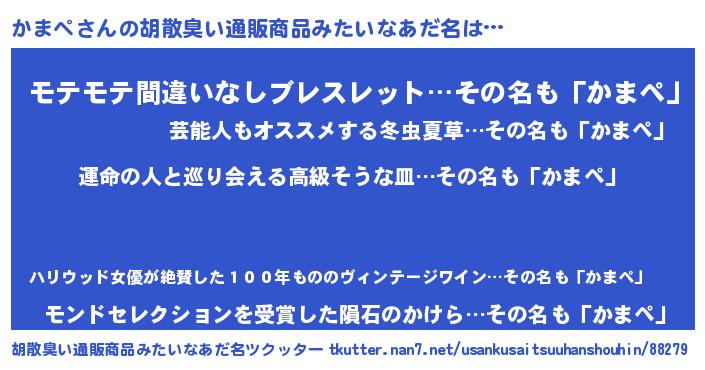 | 意味不明あだ名 | 『かまペフォーエバー』『ペロリンかまペ』 |