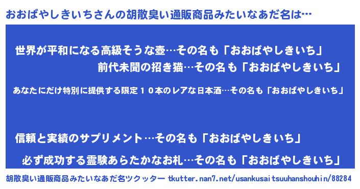 | 男性向けラノベタイトル風あだ名 | 『おおばやしきいちに滅ぼされるだけの簡単なお仕事です』 |