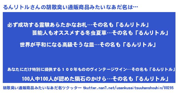 | 意味不明あだ名 | 『るんリトルフォーエバー』 |