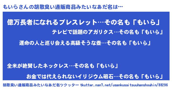 | 意味不明あだ名 | 『ヨモギ科もいら属』『ペロリンもいら』 |