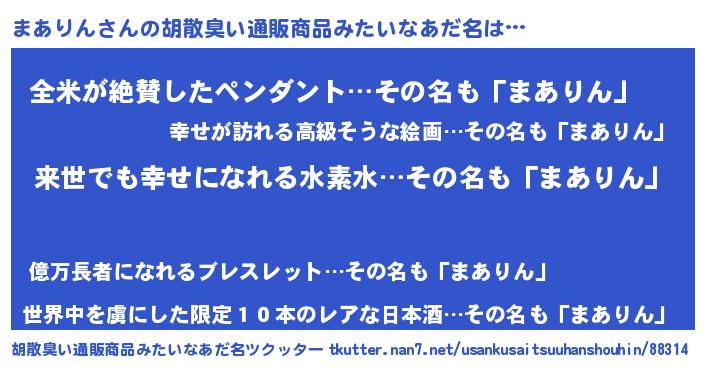 | ヘコむあだ名 | 『まありん(震え声)』『まあっちょ』 |