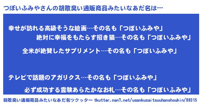 | ヘコむあだ名 | 『つぼを』『つくし』『つぼにゅー』 |