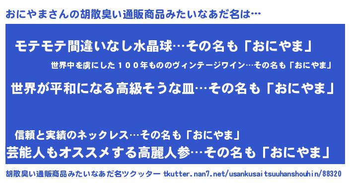 | ヘコむあだ名 | 『なまこ酢』『おににー』『おに太郎』 |