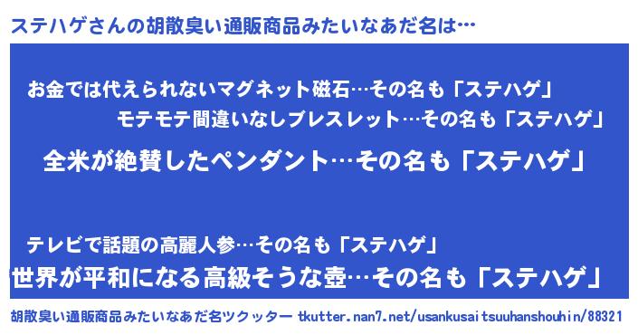 | 意味不明あだ名 | 『とにかく怪しいステハゲ』 |