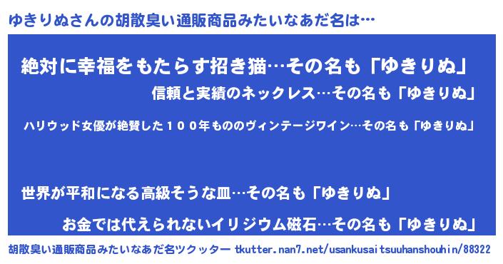 | ヘコむあだ名 | 『ゆきりぬ(笑)』『ゆきを』 |