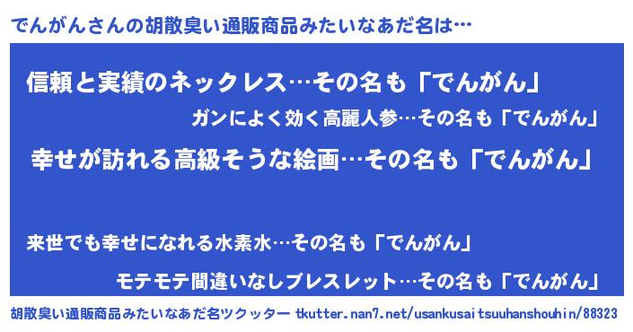| ヘコむあだ名 | 『つくし』『でん太郎』『でんふぇ~』 |