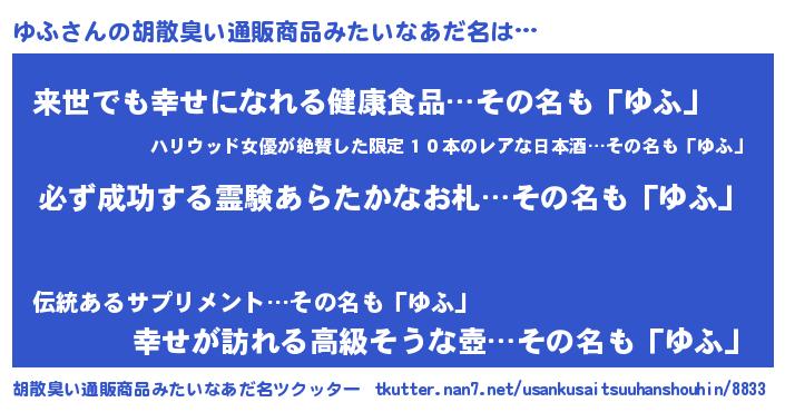 | 意味不明あだ名 | 『ペロリンゆふ』『永久保存ゆふ』 |