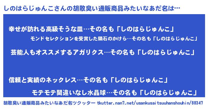 | ヘコむあだ名 | 『酢こんぶ』『しのもー』『しのっぺ』 |