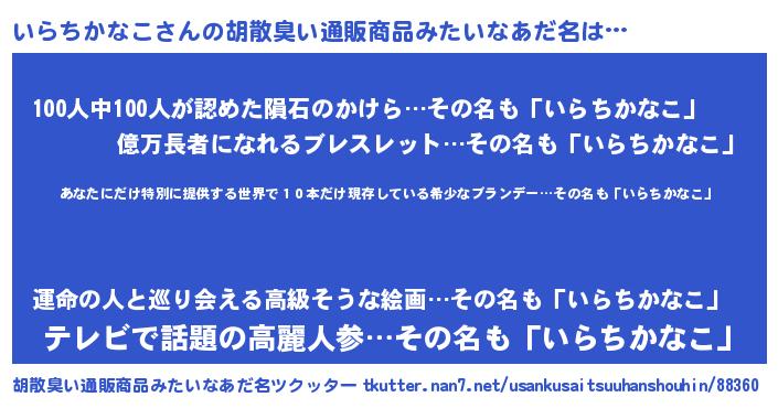 | 意味不明あだ名 | 『住所不定無職いらちかなこ(86歳)』 |