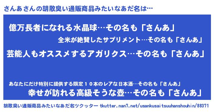 | 肩書あだ名 | 『さんあ閣下』『さんあ御曹司』 |