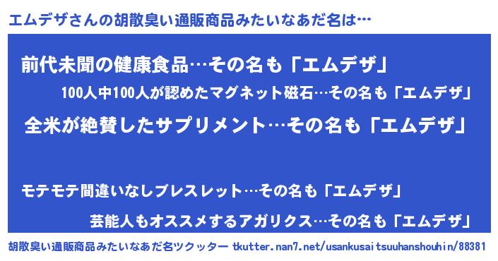 | 意味不明あだ名 | 『とにかく怪しいエムデザ』 |