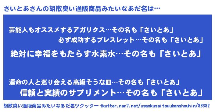 | 意味不明あだ名 | 『永久保存さいとあ』『ニラ科さいとあ属』 |