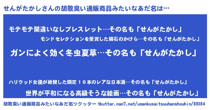 | 肩書あだ名 | 『せんがたかし総統』『せんがたかし大将』 |