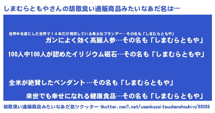 | ヘコむあだ名 | 『しまむらともや(爆)』『しまっちょ』 |