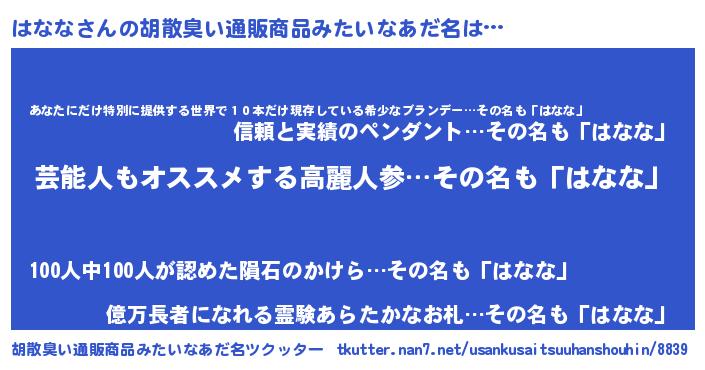 | ヒーロー風カッコイイあだ名 | 『最強戦士ハナナ』『仮面ハナダー』 |
