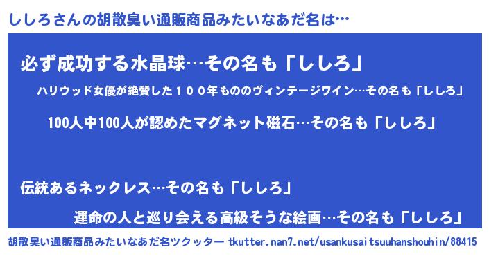 | 欧米人風あだ名 | 『トリンドルししろ』『ダニエルししろ』 |