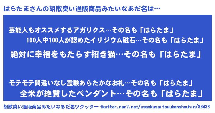 | ヘコむあだ名 | 『はらたま(小並感)』『はらぷりん』 |