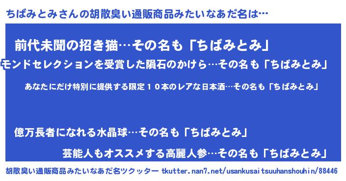 | 意味不明あだ名 | 『住所不定無職ちばみとみ(39歳)』 |