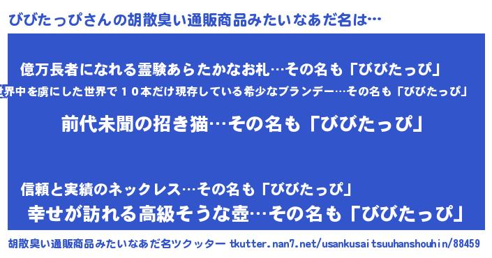 | 意味不明あだ名 | 『永久保存びびたっぴ』 |