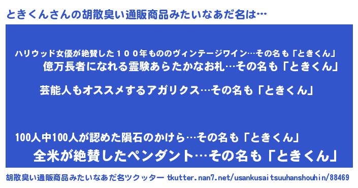 | 意味不明あだ名 | 『自称ときくん』『ペロリンときくん』 |