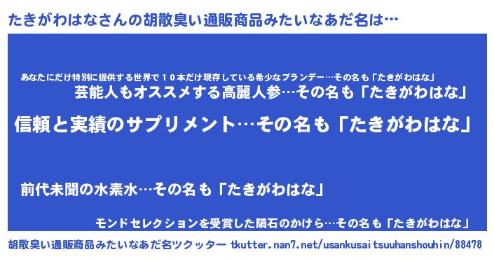 | 意味不明あだ名 | 『とにかく怪しいたきがわはな』 |