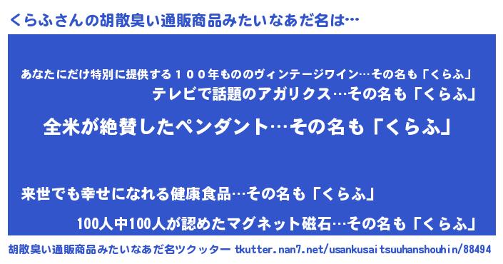 | 意味不明あだ名 | 『とにかく怪しいくらふ』『自称くらふ』 |
