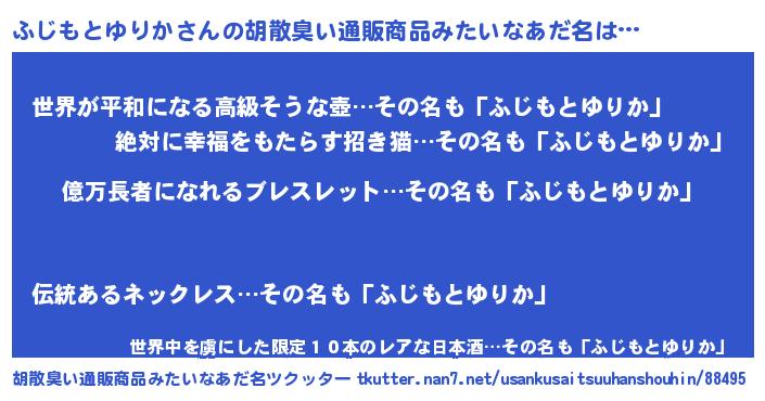 | 恥ずかしいあだ名 | 『プリティーふじもとゆりか』『ふじちん』 |