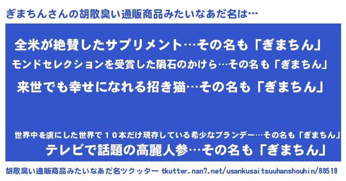 | 意味不明あだ名 | 『永久保存ぎまちん』『自称ぎまちん』 |
