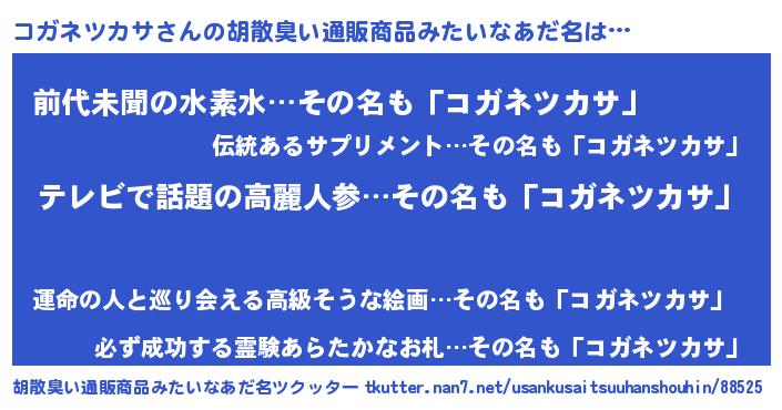 | ヘコむあだ名 | 『コガネツカサ(小並感)』『コガっふぃ~』 |