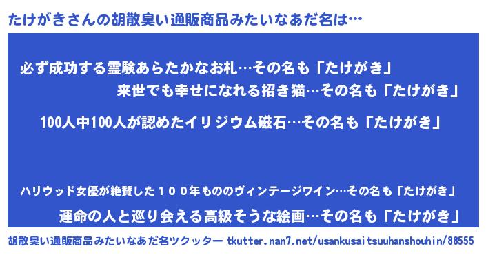 | 欧米人風あだ名 | 『ダニエルたけがき』『マイケルたけがき』 |