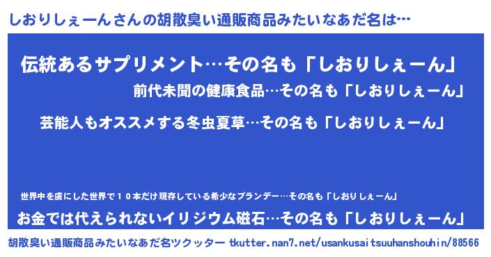 | 男性向けラノベタイトル風あだ名 | 『しおりしぇーんに滅ぼされるだけの簡単なお仕事です』 |